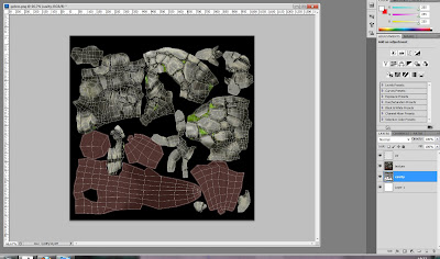 Основной (базовый) цвет набрасываю в ZBrush, иногда прорисовываю линиями основные направления складок, узоров (где необходимо). Потом, после того, как текстура будет перенесена на лоуполи модель с ювишками для снятие карт, вы поймёте как мне это поможет.